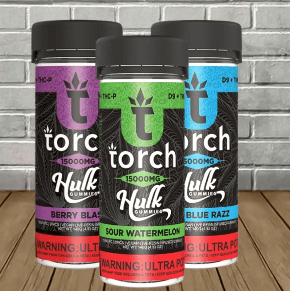 Torch Live Resin D9 + THCP Hulk Gummies 15000mg is Torch Enterprises’ newest high-potency gummy creation! We haven’t seen a high-potency gummy from Torch Enterprises since their Diamond Drops and Nitro Blend gummies. Great CBD Shop is here to tell our hemp-loving friends that these Hulk gummies blow both of those product lines out of the water!